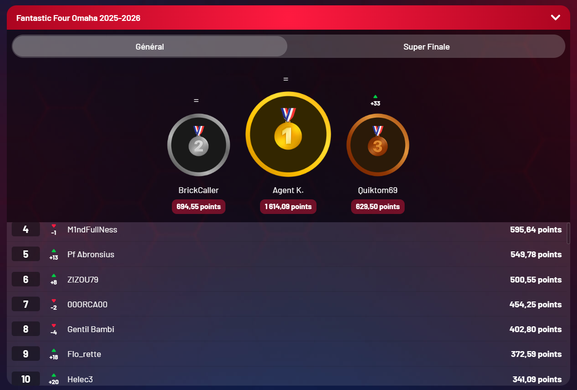 La deuxième manche du Fantastic Four Omaha a eu lieu ce lundi 6 octobre sur Winamax, où 48 participants se sont présentés (contre 39 à la première manche. Certains ont mis un peu de temps à se réveiller il faut croire !). Plus de prizepool donc, et plus de points à gagner pour le classement général des 8 manches au total.
