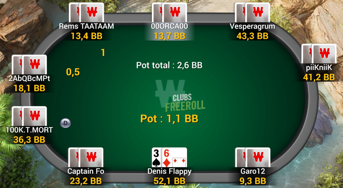 Et c'est malheureusement Captain Fo qui met en jeu ses 6 dernieres BB, avec Q9o, et qui rencontre malheureusement un A2s du chipleader (c'est moi! :D)...