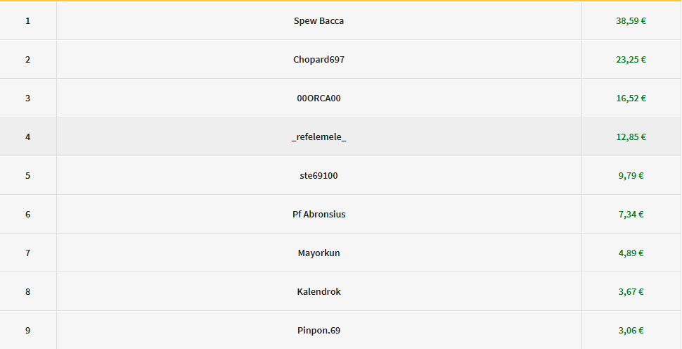 Spew Bacca (MasterYoghurt), Chopard697 (CHOPARD), 00ORCA00 , __refelemele__ (Davniem), ste69100 , Pf Abronsius (OLpot), Mayorkun (Kunta), Kalendrok (Kalendrok), Pinpon.69 (Pinpon69).