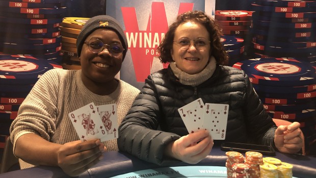 Mais contrairement à d'habitude, et pour la première fois à P@L (de mémoire de notre président Jaybee, donc assez fiable en principe :-) ) nous avons eu le droit à un HU 100% féminin entre Vandux et Marvel. Vandux qui était large chipleader au début de la TF a écrasé la table finale avant de se faire destacker en HU par Marvel qui a passé ses flips au bon moment.